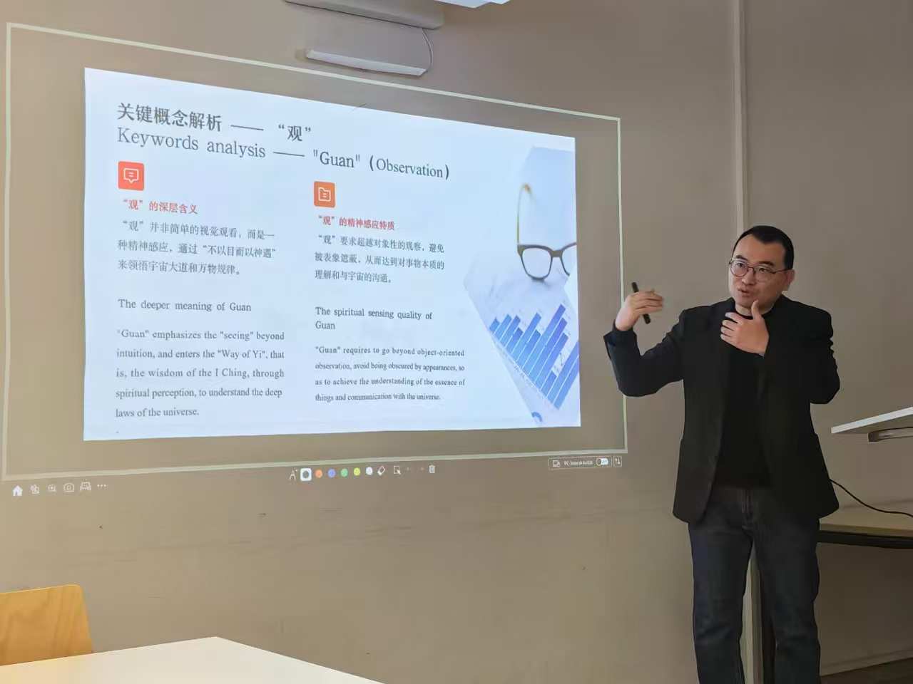 离开慕尼黑之后,代表团又应邀前往纽伦堡,对埃尔兰根-纽伦堡大学以及纽伦堡孔子学院进行了访问。期间,代表团与埃尔兰根-纽伦堡大学人文社会科学高等研究中心主任Michael Lackner(朗宓榭)教授进行了会谈。朗宓榭教授自2009年起多次带领团队访问山东大学易学与中国古代哲学研究中心,双方于2013年签署了合作协议,互设分支机构。双方回顾并总结了山东大学易学与中国古代哲学研究中心与埃尔兰根-纽伦堡大学国际人文研究中心暨汉学系自互设分支机构以来的合作情况和取得的相关成果。张文智教授还受邀为纽伦堡孔子学院的汉学教师及纽伦堡附近的中国传统文化爱好者举办一场题为“《易经》与中国传统文化”的学术讲座。讲座由纽伦堡孔子学院院长徐艳教授主持。在互动阶段,代表团成员回应了与会人员提出的各种问题,对以《易经》为源头活水的中国文化在海外的传播,发挥了积极作用。