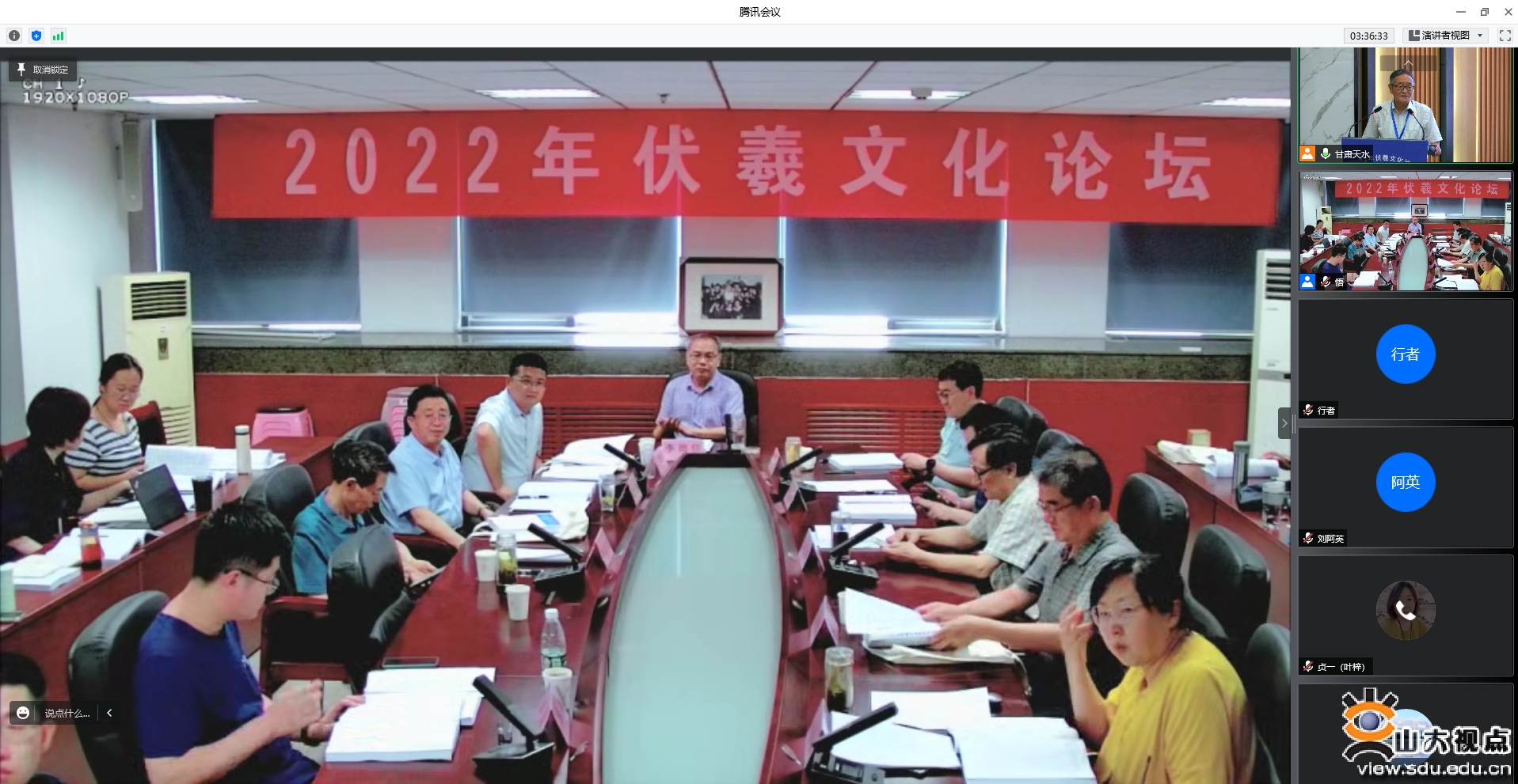 6月21日至22日,由山东大学易学与中国古代哲学研究中心、中国周易学会、国际易学联合会、天水市人民政府、甘肃省人民政府文史研究馆、天水师范学院主办,中共天水市委宣传部、天水市伏羲文化研究中心承办,天水市文化和旅游局、《周易研究》编辑部协办的2022年伏羲文化论坛,以线上线下相结合的方式在甘肃天水、山东济南分别设立会场,同时召开。