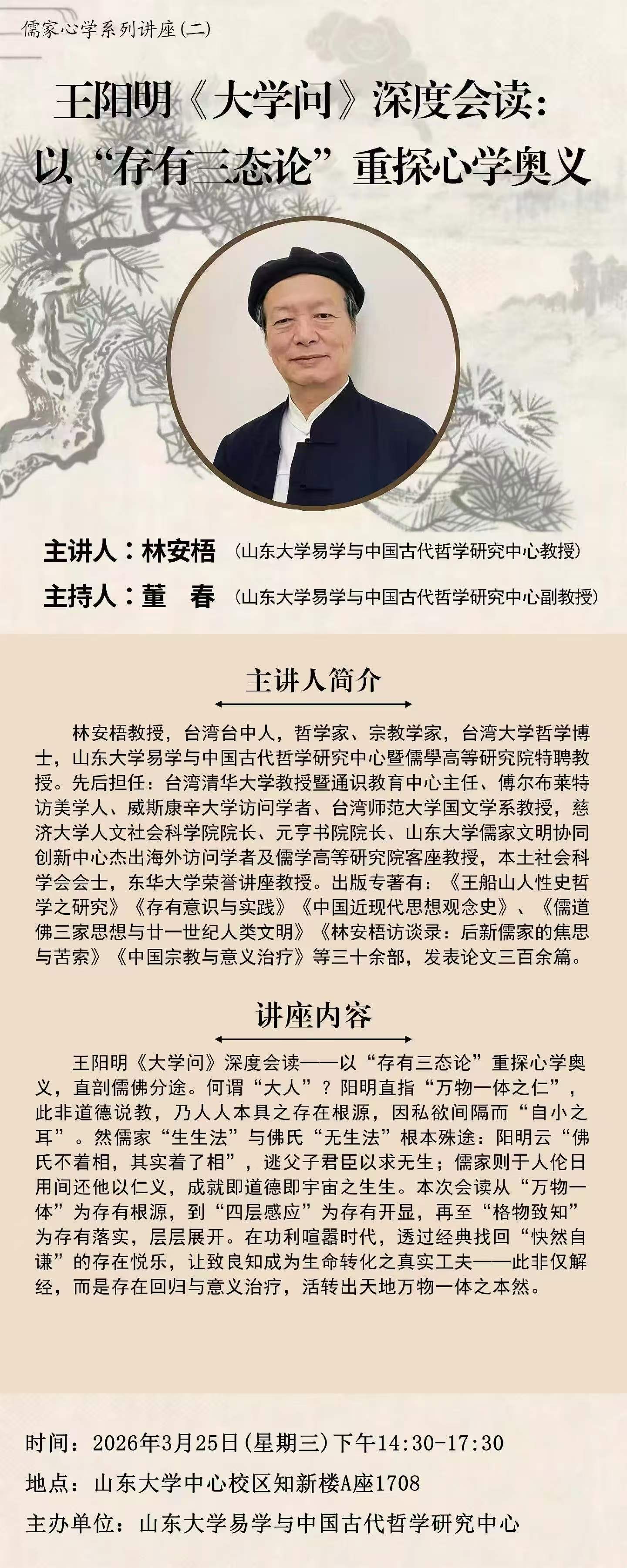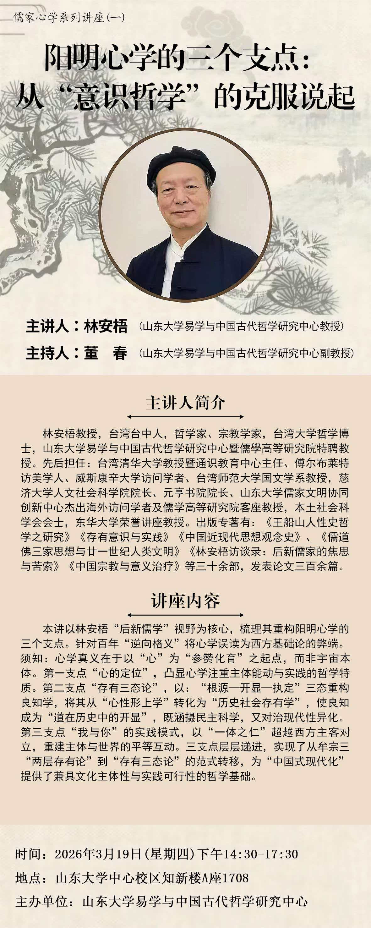 讲座预告:儒家心学系列讲座