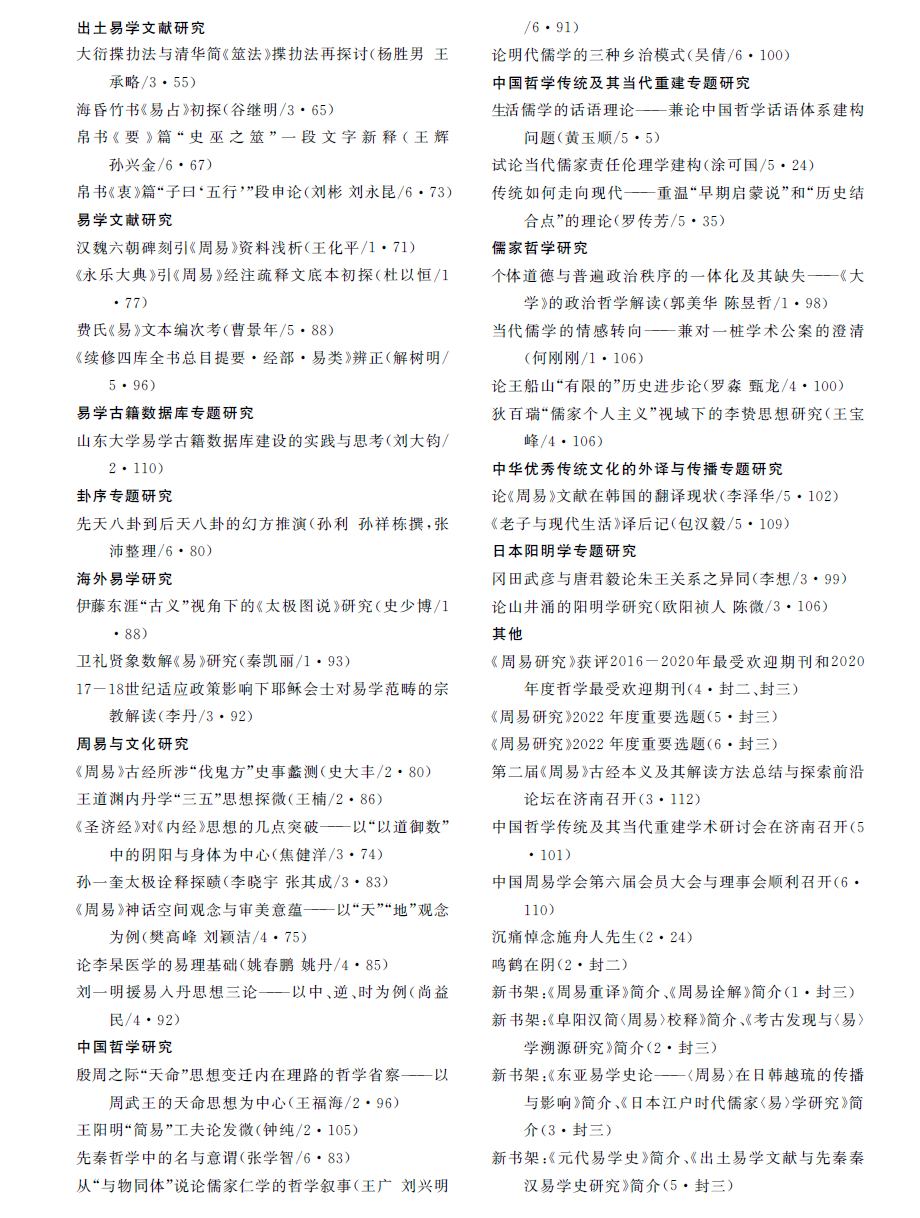 年度目录:《周易研究》2022年分类总目录