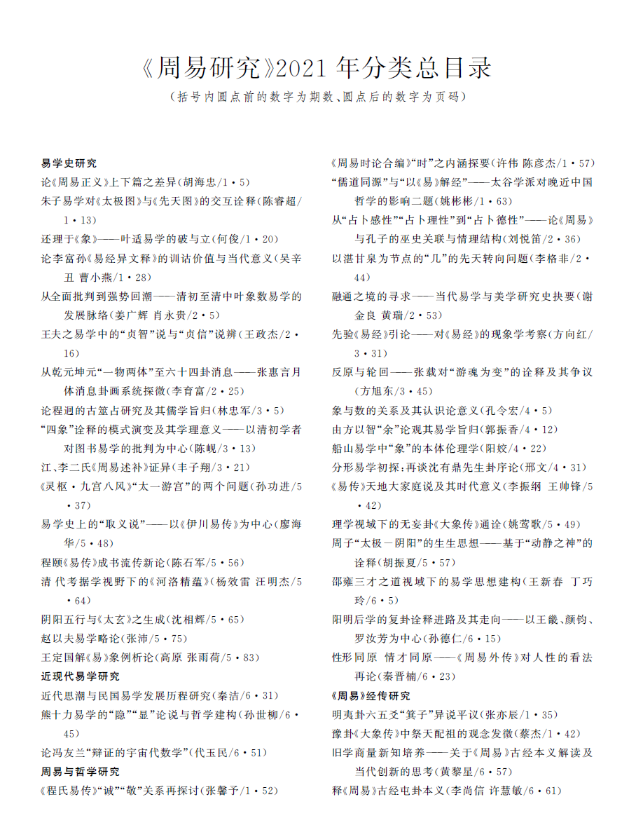 年度目录:《周易研究》2021年分类总目录