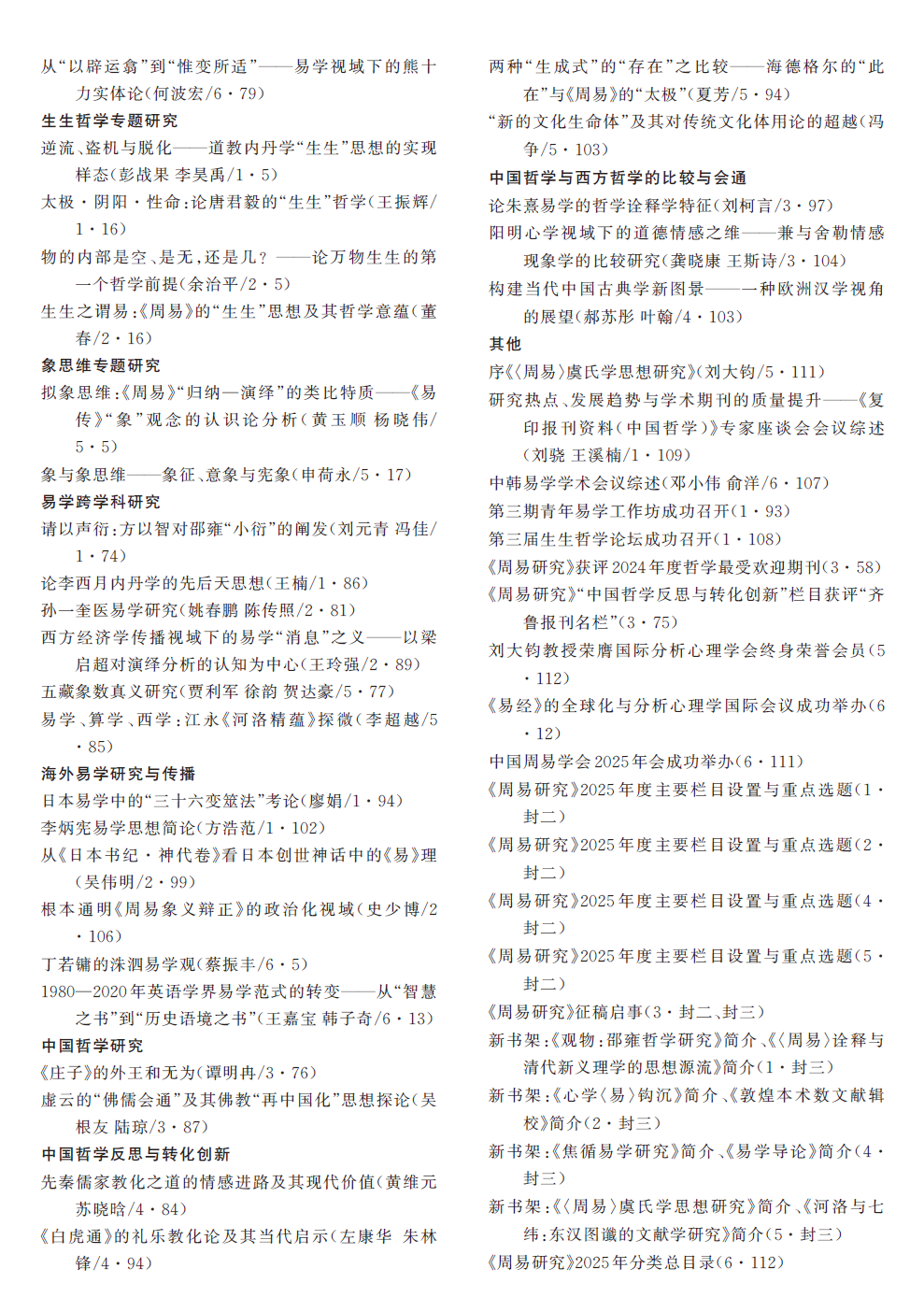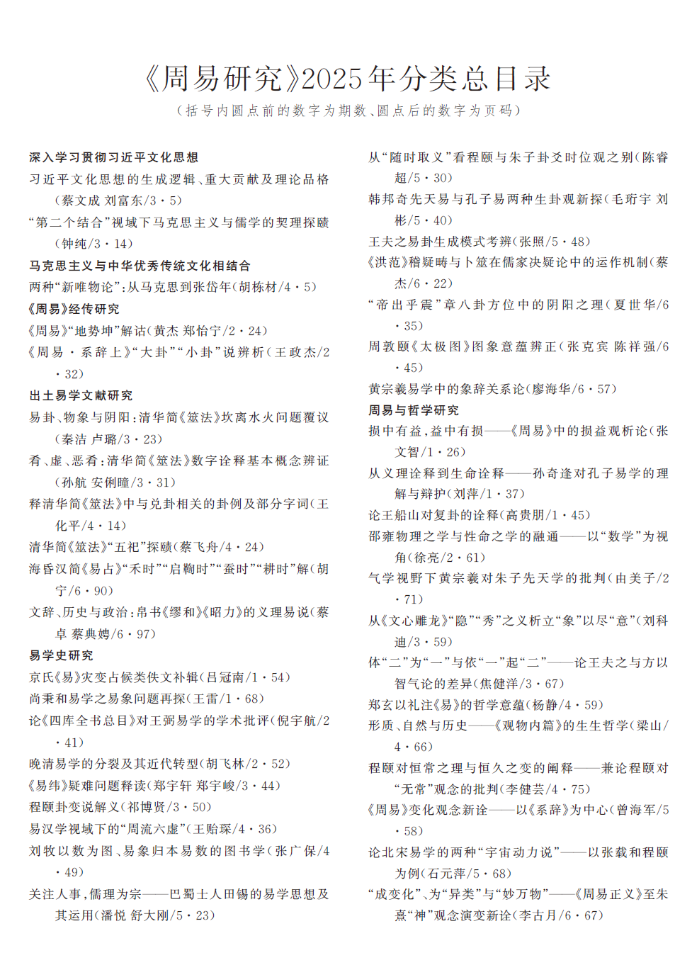 年度目录:《周易研究》2025年分类总目录