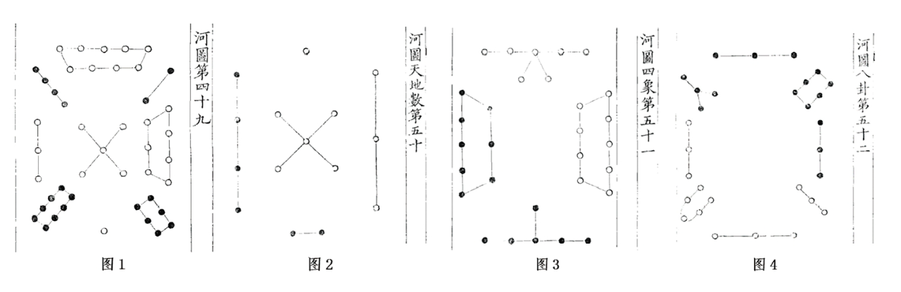 如果稍加留意便可以发现,在《易数钩隐图》中,《河图》图式系列与《太极》图式系列,除了《河图》本图(图1)与《太极》本图(图5)外,此两套图式系列之诸图是相重复的。李觏之所以作《删定易图论》,最主要的原因也是认为其图“观之则甚复重”(《李觏集》,第52页)。对此,我们似乎应进一步思考:刘牧为什么不嫌诸图重复?显然自有其用意。这个问题既涉及如何理解《河图》之意义的问题,也涉及如何理解《河图》图式系列与《太极》图式系列的关系问题。以笔者之见,在刘牧那里,他是以九数之《河图》为母图,而以《河图天地数》《河图四象》《河图八卦》等为其衍生图,它们共同演绎“伏羲”如何效法《河图》而画八卦。而无论《河图》,还是《洛书》,都本之于太极—两仪—四象—八卦生化之理数。