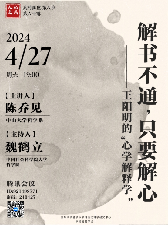 讲座回放:人文化成第60讲-王阳明的“心学解释学”【中山大学陈乔见教授】_哔哩哔哩_bilibili