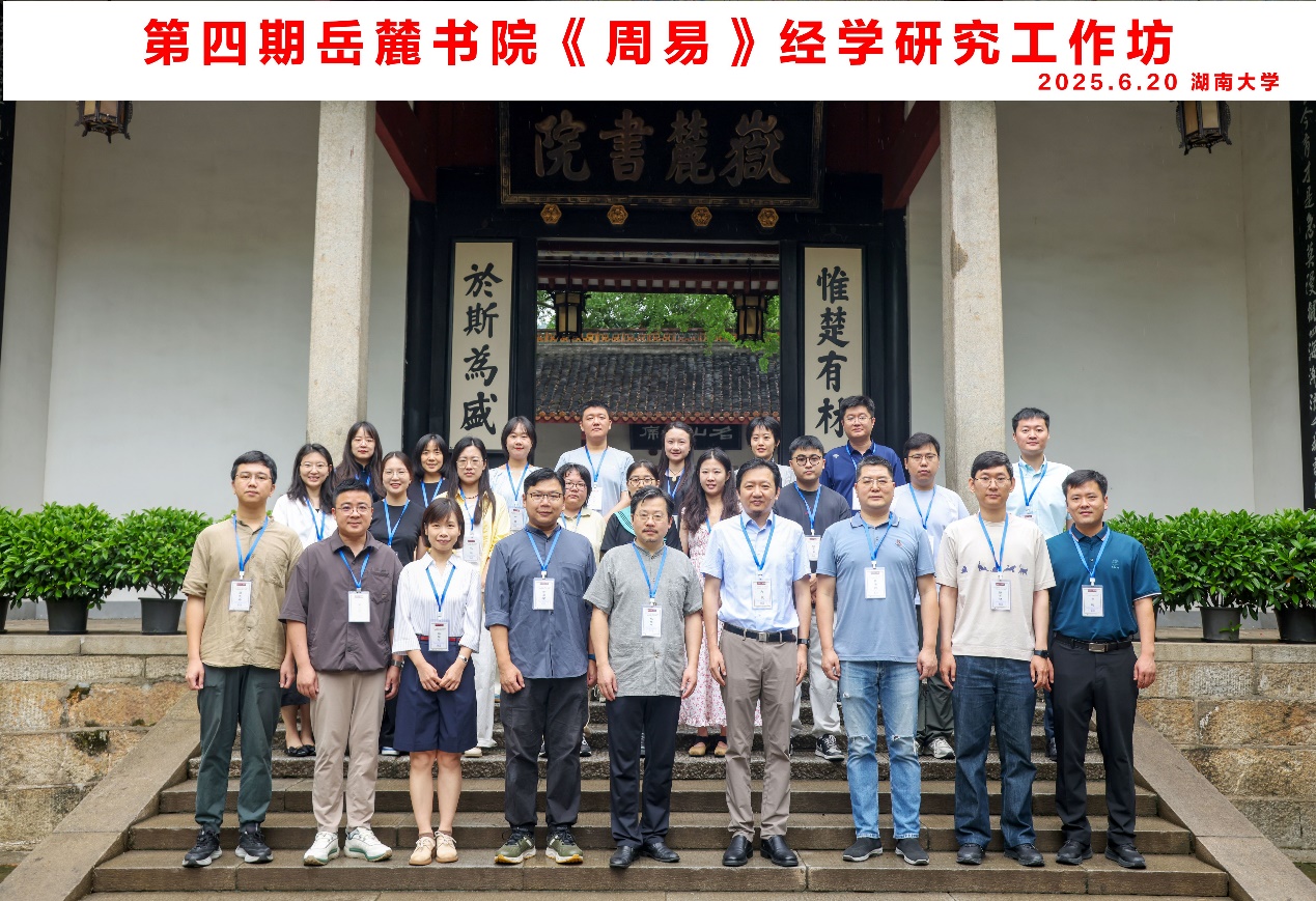 2025年6月19-21日,“第四期岳麓书院《周易》经学研究工作坊暨第四期青年易学工作坊”于湖南长沙成功举办。本期工作坊以“‘返本’视域下的《周易》经学研究”为主题,由湖南大学岳麓书院、山东大学易学与中国古代哲学研究中心、中国周易学会、《周易研究》编辑部主办,由敦和基金会支持。来自北京大学、中国政法大学、中国社会科学院、北京师范大学、武汉大学、湖南大学、山东大学、上海师范大学、山东师范大学、河南大学、尼山世界儒学中心、福建师范大学、扬州大学、香港能仁专上学院等高校及研究机构的二十余位学者参与了本次会议。
